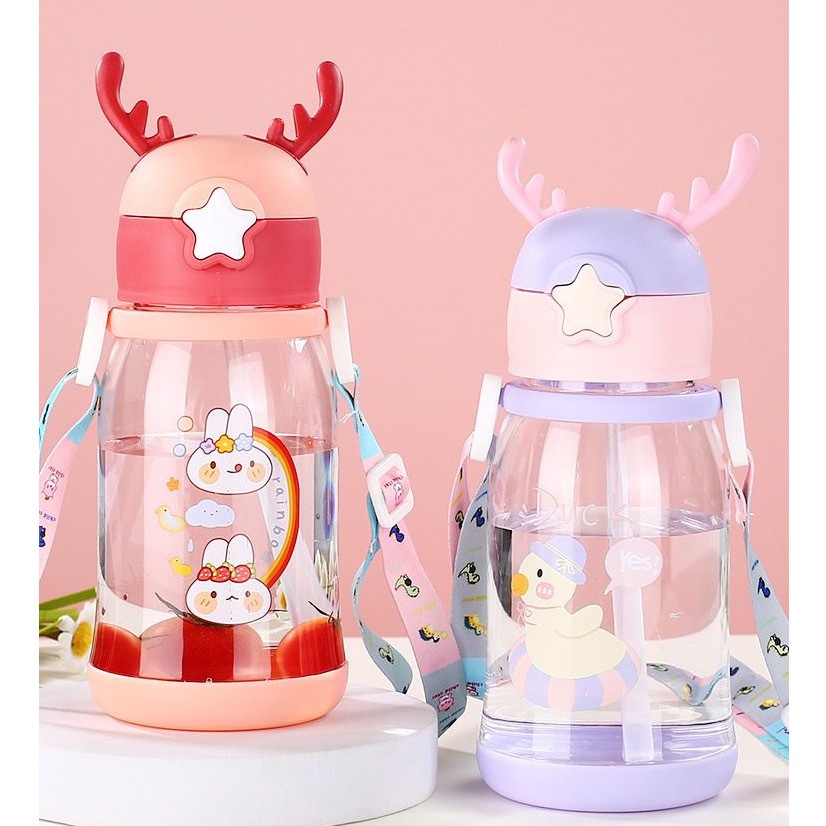 Garrafa de água com canudo. Bico de silicone de qualidade, material seguro, macio e protege suas gengivas. A tampa do copo possui anel de silicone de vedação embutido, que é seguro e higiênico, e não é fácil vazar. A tampa da garrafa pode ser aberto com um botão, podendo ser aberto com uma prensa leve. É muito conveniente e fácil de beber água. Fundo copo antiderrapante e resistente a queda. Design de alça portátil e ajustável, fácil de carregar ao sair. Estilo: Cartoon Capacidade: 680ml Tamanho: 220x80 mm Material: bood Grade Silicone PP Tipo: Garrafa Água Pacote incluindo: 1x Garrafinha 1x Orelinha de Alce em silicone 1x Canudo 1x Alça com prendedores 1x anel de silicone para vedação