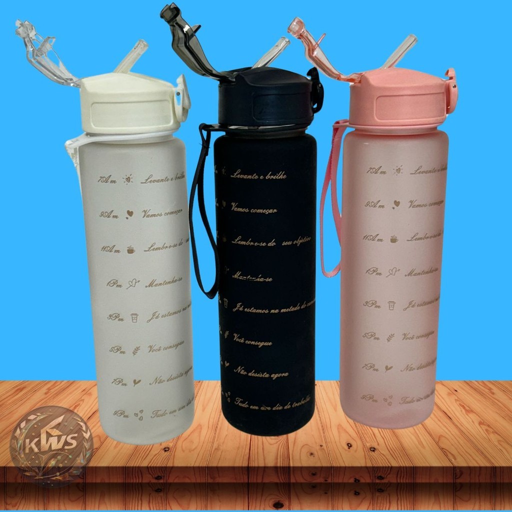 Garrafa De Água Fosca 750ml Esportes Homens e Mulheres com Frases Motivacionais e Canudo - Cores Aleatórias