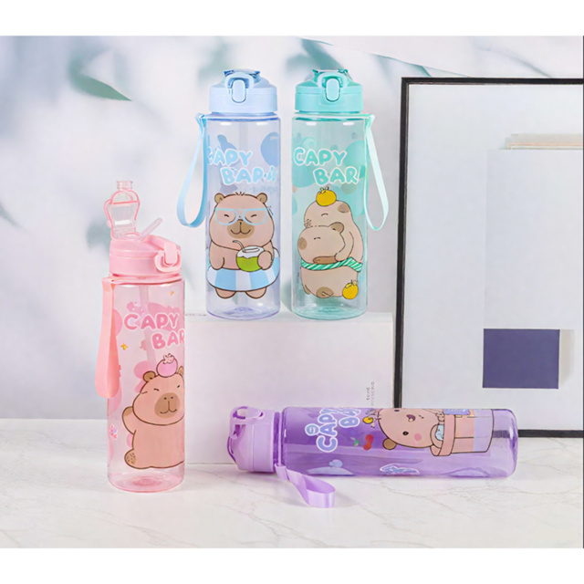 Garrafa de água infantil com canudo de 650ml/800ml com design de desenho animado