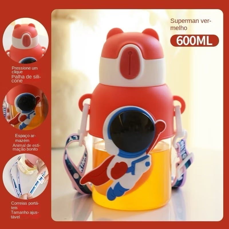 Garrafa De Água Infantil Criança Portátil Com Canudo 600ml