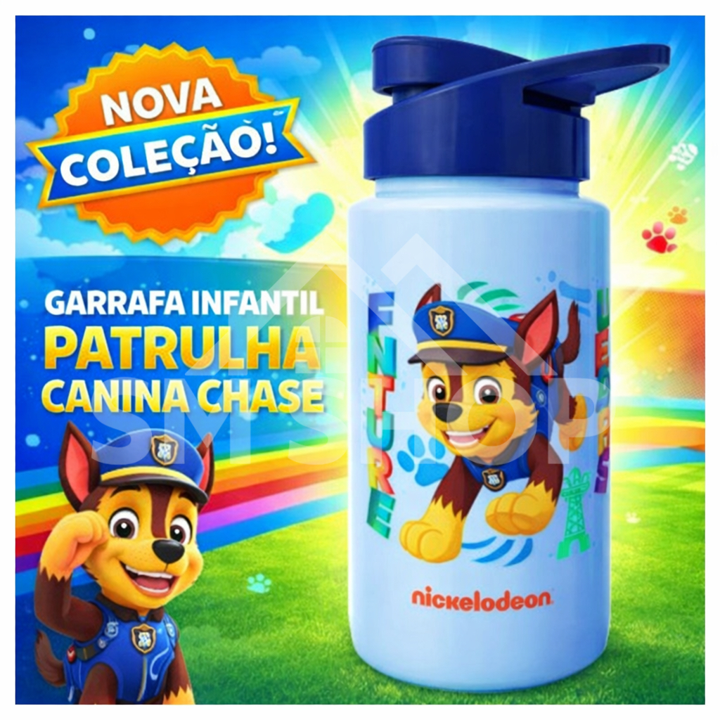 | Garrafa de Água Infantil Squeeze Com Tampa Alça Patrulha Canina Men... este produto | R$ 19,80 | 34% | 5.0/5 | — |