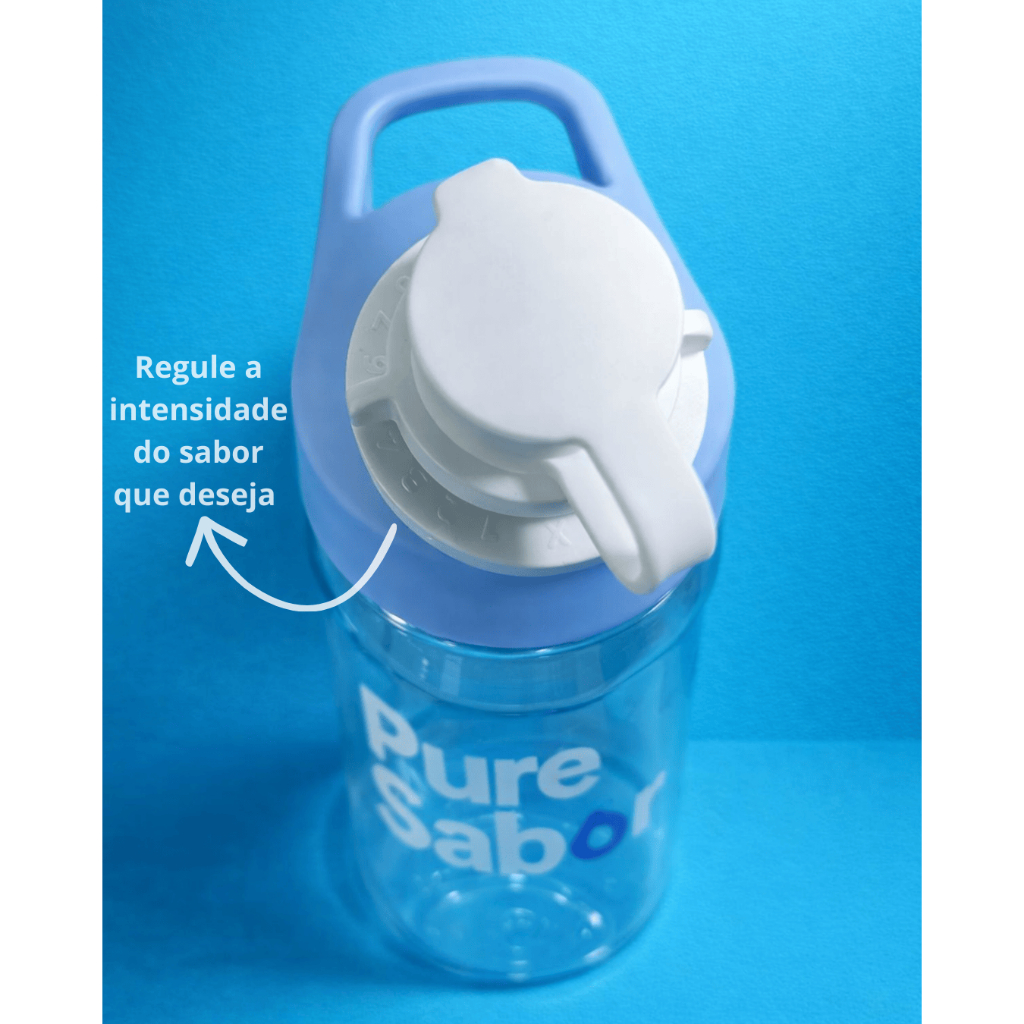 Garrafa de Água Saborizada Pure Sabor + 3 Sabores | Squeeze Saborizador de Água | Zero Açúcar Zero Calorias Azul