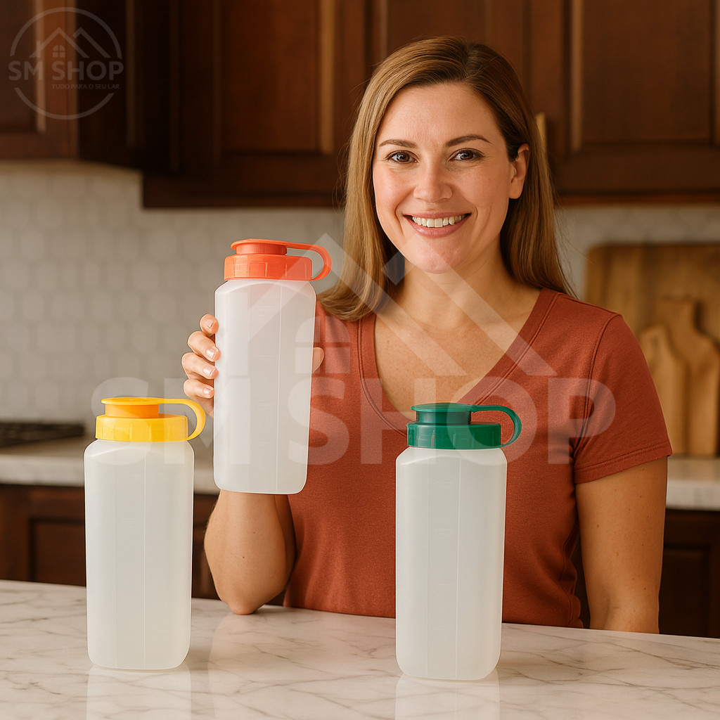 Garrafa De Água Suco Para Geladeira 1 Litros Com Tampas Coloridas Resistente FlipTop Cores Sortidas