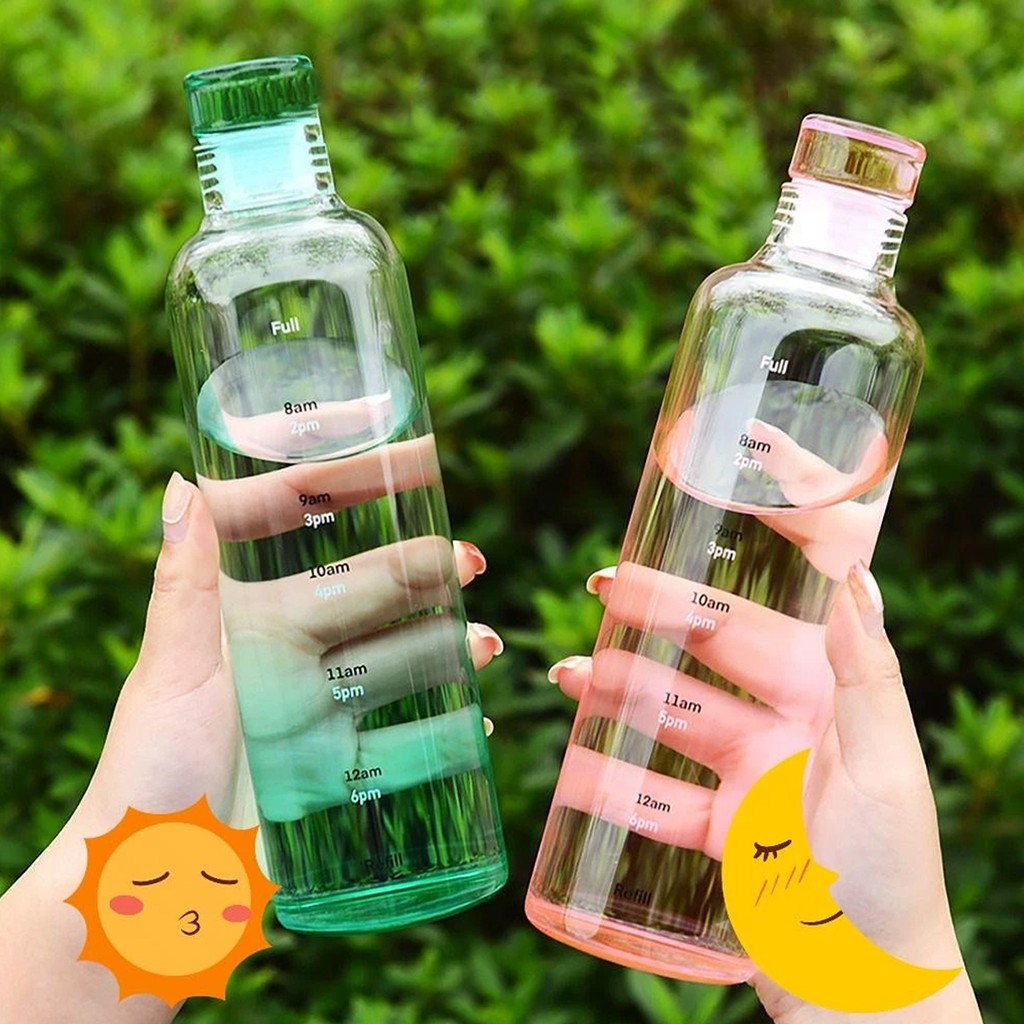 Garrafa de água transparente portátil de 500ml com marca de tempo