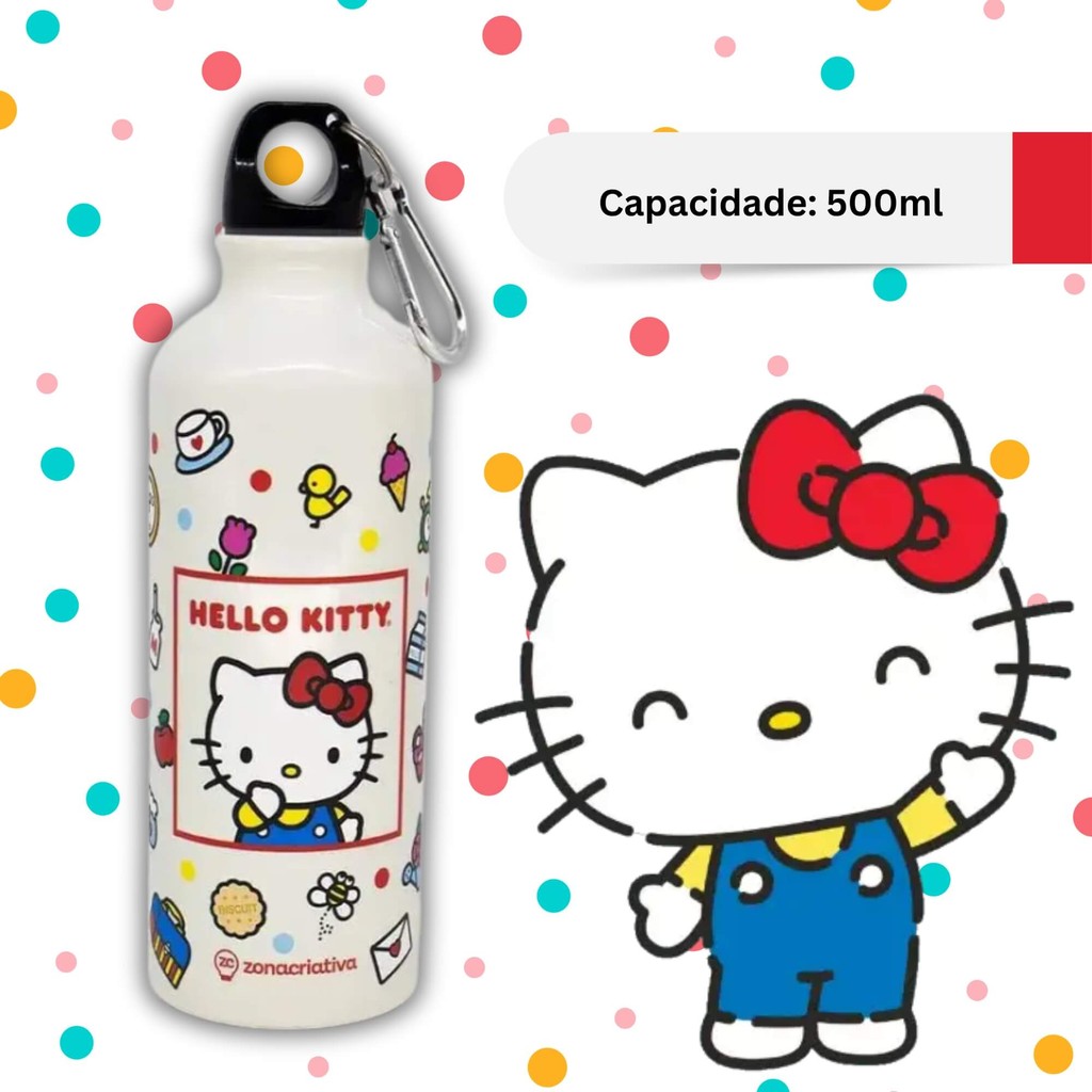 Garrafa de Alumínio 500ml c/ Mosquetão Hello Kitty Zona Criativa - 10073073