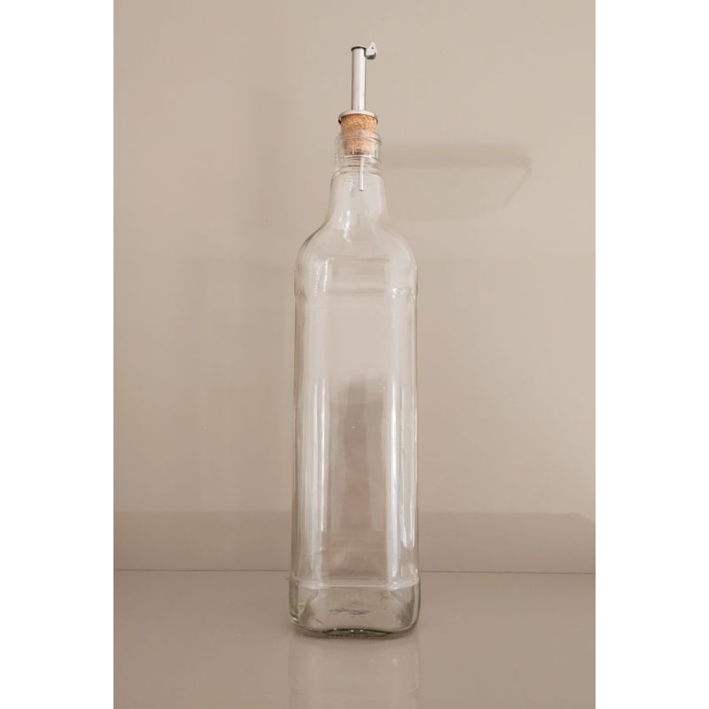 Garrafa de vidro quadrada 900ml com dosador em rolha de cortiça galheteiro para líquidos, óleo, azeite, vinagre, etc..