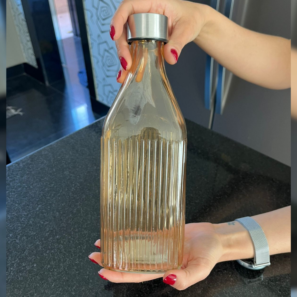 Garrafa De Vidro Quadrada Para Geladeira 1Litro Decoração Agua Scotch Drink Amarelo Ambar