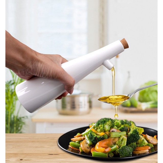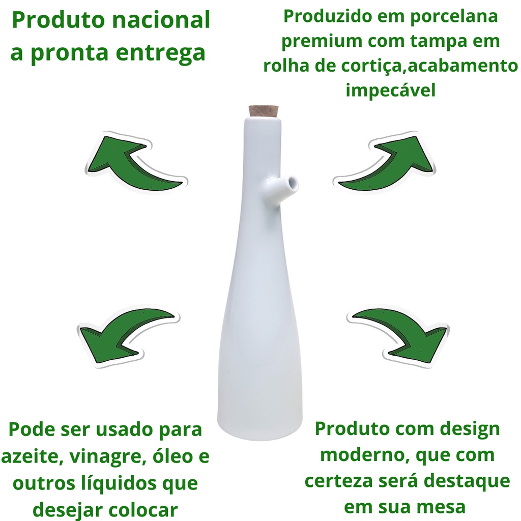 Garrafa Galheteiro Porcelana Premium 300ml Porta Azeite Óleo Vinagre com Bico Dosador