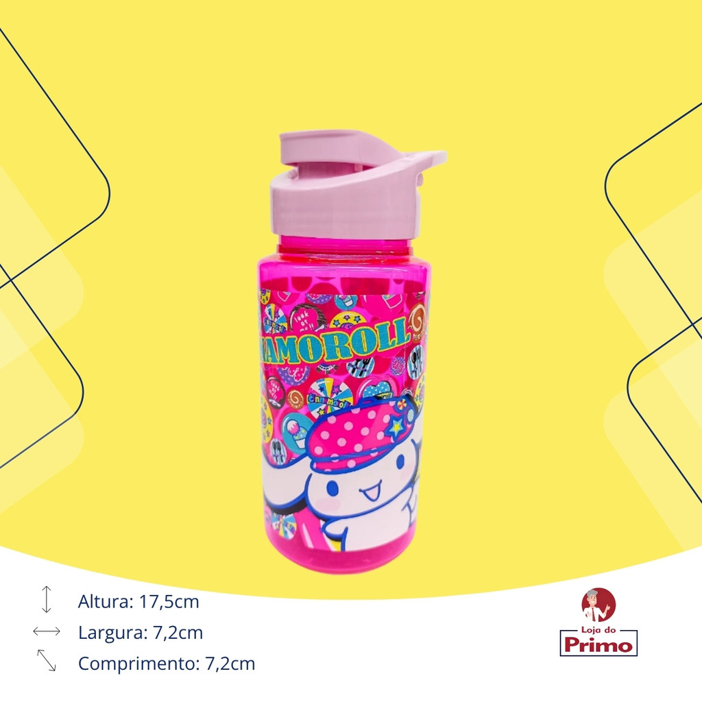 Garrafa Garrafinha de Água Infantil Squeeze Cinnamoroll 500ml Plástica Rosa Cachorrinho Bandeirante