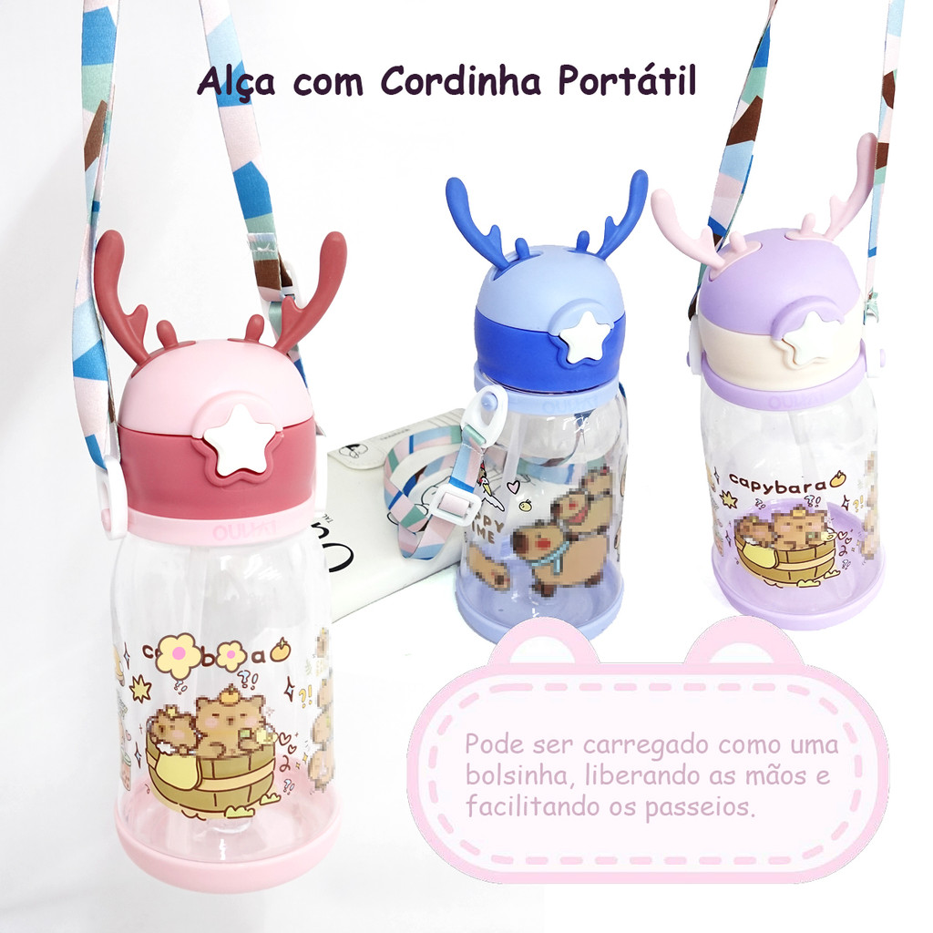 Garrafa Infantil Capivara 600ml com Alça e Canudo – Plástico -- Capivara