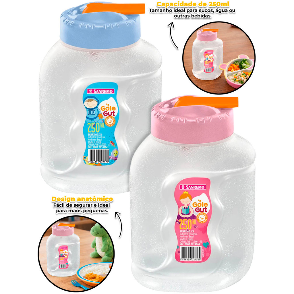 Garrafa Infantil Sanremo 250ml C/ Bico E Tampa P/ Escola Água E Suco Antivazamento