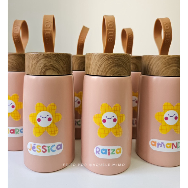 garrafa inox termica bambu 250ml escolar personalizada margarida com o nome
