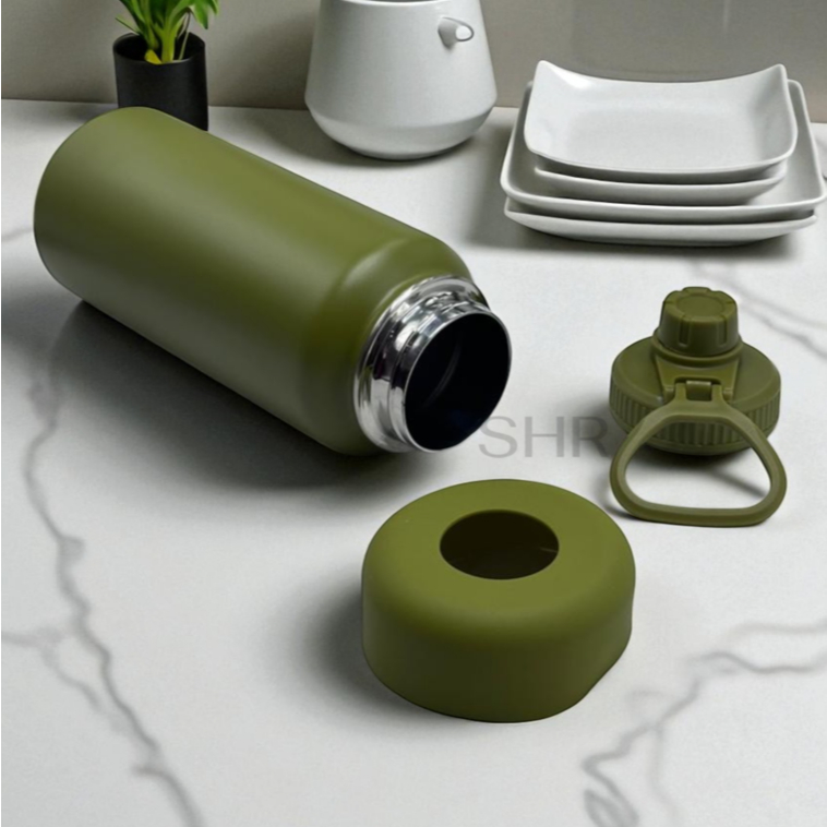 Garrafa Térmica 950ml Com Base De Silicone Removível - HE-1808 Perfeita para acompanhar em atividades do dia a dia, esta garrafa térmica de 950ml combina praticidade, durabilidade e eficiência térmica em um design compacto e leve. Principais Características: Material: Inox – 304 , resistente Capacidade: 950ml Isolamento: Rosca á Vácuo com anel de vedação. Alça com acabamento impecável Bico redondo Design em Aço Inoxidável: Elegância e durabilidade em um único produto, garrafa é resistente e projetada para durar. - Protetor de Silicone na Base: Evita riscos e amassados, aumentando a durabilidade do produto.. Livre de BPA: Sua saúde em primeiro lugar! A garrafa é totalmente livre de BPA, garantindo que sua hidratação seja segura e saudável. Parede Dupla e Isolamento a Vácuo: Mantenha suas bebidas geladas por horas ou desfrute de líquidos quentes por mais tempo. A tecnologia de parede dupla e isolamento a vácuo preserva a temperatura ideal para suas bebidas. Isolamento de alto desempenho: O exterior permanece fresco ao toque com bebidas quentes e à prova de suor com frio. Portátil: Leve sua garrafa para onde quer que vá! Design portátil e vedação premium que evita vazamentos, proporcionando conveniência máxima. Alça de transporte: A garrafa conta com alça resistente dobrável, o que facilita muito no transporte durante a prática de esporte e viagens. Diversas Cores Disponíveis: Adicione um toque de cor à sua rotina!