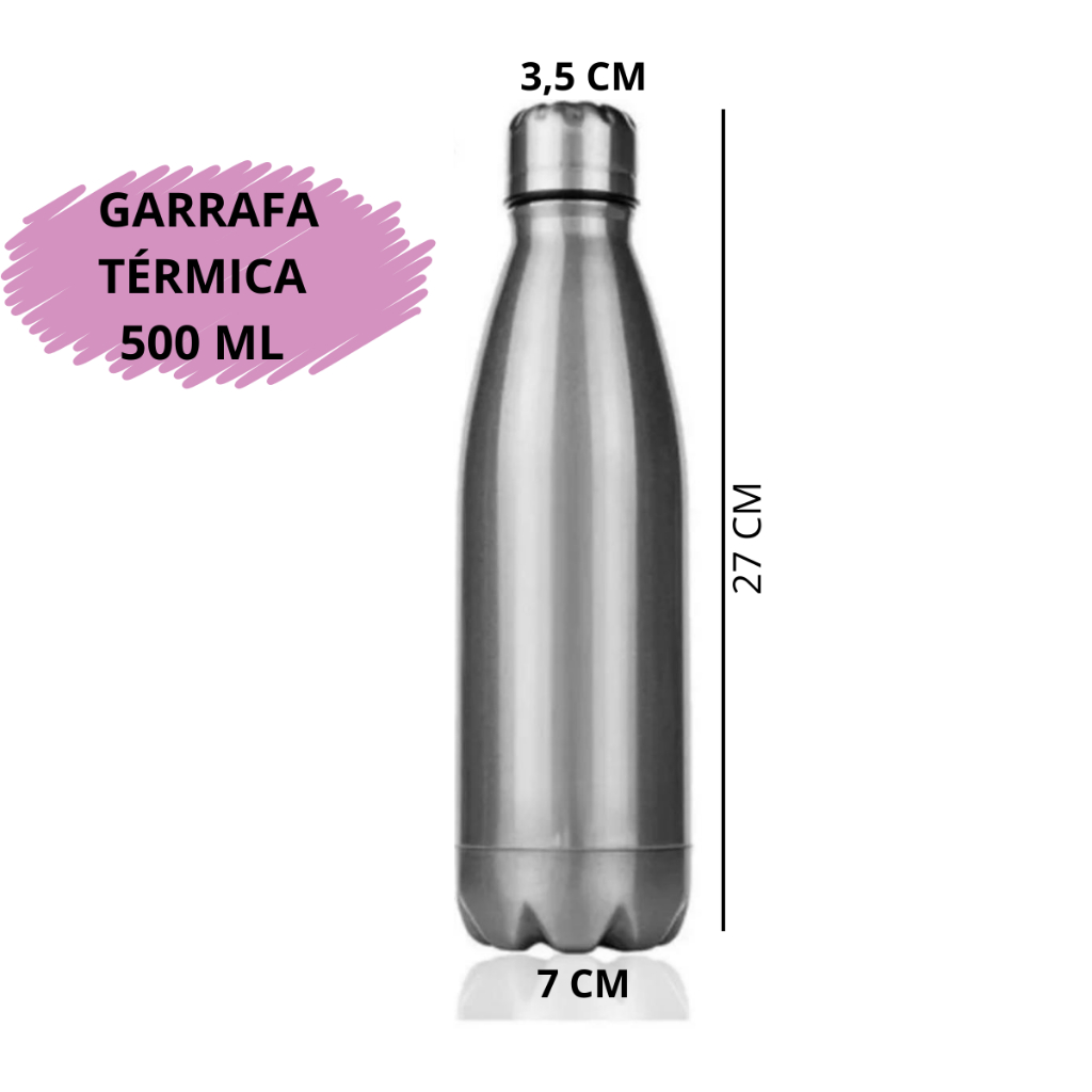Descrição: GARRAFA TÉRMICA INOX PAREDE DUPLA !!! Garrafa Original com garantia e nota fiscal ! A QUERIDINHA NACIONAL EM HIDRATAÇÃO QUENTE E FRIA. 500 ML ou 1 LITRO A Garrafa Inox Academia Caminhada Squeeze é o acessório perfeito para te acompanhar durante seus treinos e caminhadas. Feita em material de alta qualidade, em aço inoxidável, essa garrafa é resistente e durável. Você terá água suficiente para se manter hidratado durante suas atividades físicas. A tampa de rosca garante que a garrafa esteja sempre bem fechada, evitando vazamentos indesejados. Além disso, a garrafa é livre de BPA, garantindo a sua segurança e saúde. Com um design moderno que combina com o seu estilo. 500 ML altura de 27 cm e a largura de 7 cm tornam essa garrafa prática e fácil de transportar. 1 LITRO altura de 32 cm e a largura de 9 cm tornam essa garrafa prática e fácil de transportar. Aproveite todos os benefícios dessa garrafa de alta qualidade e mantenha-se hidratado durante suas atividades físicas. Inclui alça para facilitar o transporte Pode ser usado em bebidas quentes ou geladas. Sistema de fechamento que impede vazamento. Bocal mais largo para acomodar cubos de gelo. Composição: Inox GARRAFA É TÉRMICA Antes do primeiro uso Lavar o produto com água morna e detergente, fechar a tampa e chacoalhar. Não colocar a garrafa no congelador/Geladeira. Produto em estoque e envio em até 24 horas úteis.