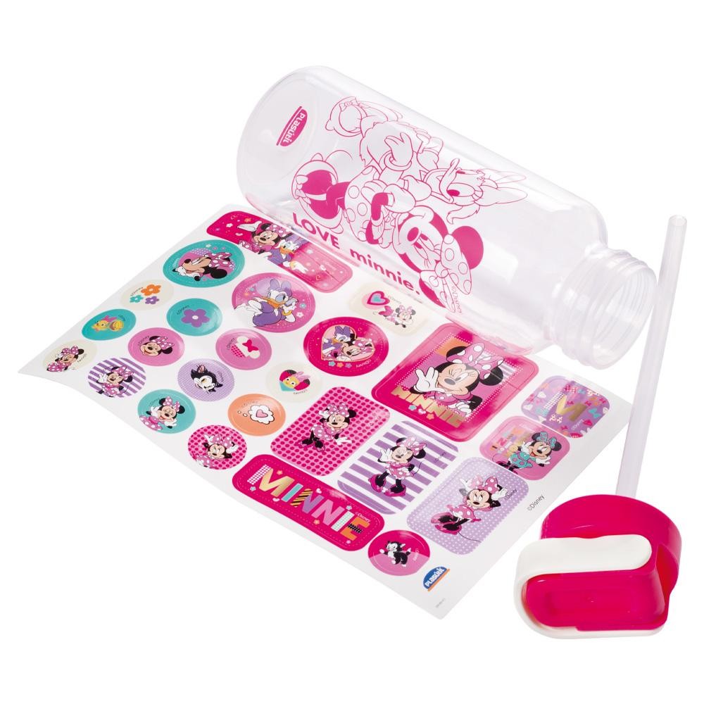 Garrafa Minnie Rosa Canudo Customizável Adesivos Plasútil