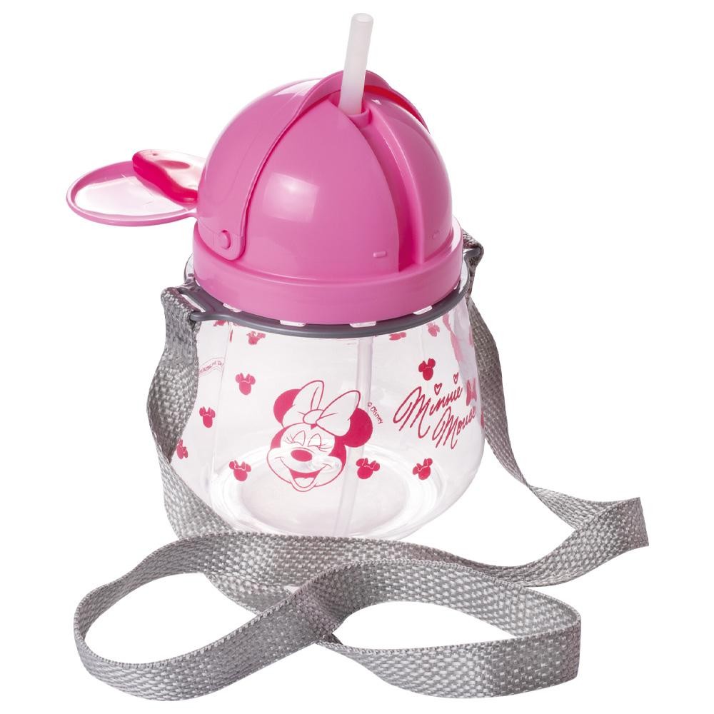 Garrafa Minnie Rosa Lúdica Canudo Tampa Orelhinhas Plasútil