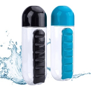 Garrafa para Academia Fitness de Água com Porta Comprimidos 650ML Lembrete de Comprimidos