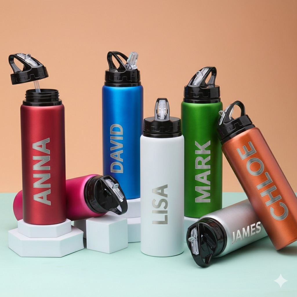 Garrafa Personalizada Squeeze Alumínio 800ml Com Canudo E Tampa Anti-Vazamento Envio Imediato