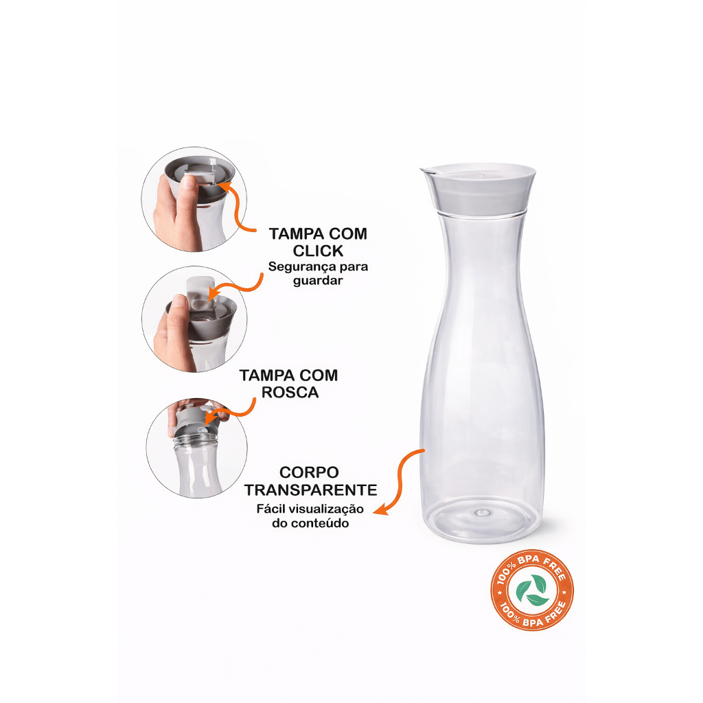 🥤 Garrafa Plástica New York 1 Litro com Tampa Rosca e Sobretampa – BPA FREE Design moderno, resistente e prática para o dia a dia! A Garrafa New York 1L é ideal para quem deseja praticidade e estilo na hora de armazenar água, sucos, chás gelados e outras bebidas. Com um design elegante e corpo transparente, ela combina perfeitamente com qualquer cozinha e facilita o uso no cotidiano. Produzida em PET de alta qualidade, com tampa em polipropileno (PP) — ambos livres de BPA (BPA FREE) — garantindo total segurança para uso alimentar. ⭐ Diferenciais da Garrafa New York 1L ✔ Tampa de rosca firme – evita vazamentos ✔ Sobretampa encaixável – prática para servir ✔ Material resistente e atóxico ✔ Pode ir ao freezer ✔ Design moderno com várias opções de cores ✔ Ideal para geladeira ✔ Fácil de limpar 🧊 Ideal para armazenar: Água Sucos Chás gelados Bebidas frias em geral (Não recomendado para líquidos quentes.) 📏 Características Técnicas Volume: 1 Litro Material do corpo: PET Material da tampa: Polipropileno (PP) Atóxica e BPA FREE Dimensões: 10,1 cm (diâmetro) x 25,2 cm (altura) Temperatura máxima permitida: 50°C ⚠️ Cuidados e Recomendações Não utilizar no micro-ondas Não usar na lava-louças Não armazenar líquidos quentes Não deixar exposto ao sol Lavar com esponja macia Permitido uso no freezer 🎨 Cores disponíveis Branco Vermelho Preto Cinza Marmorizado Azul Bege Madeira Verde ✨ Wallace Utilidades Domésticas – produtos práticos e confiáveis para sua casa!