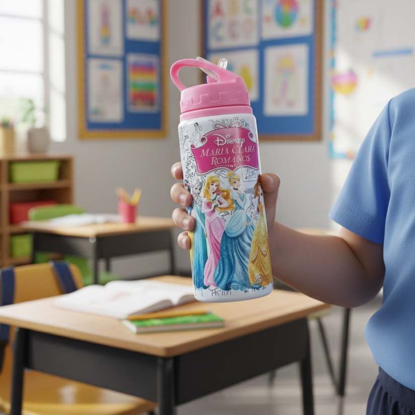 Garrafa princesas personalizada com nome 600ml de aluminio Infantil princesa sofia cinderela
