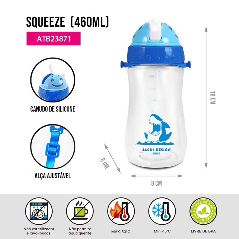 A Garrafa Infantil com Canudo de Silicone Pimpolho é a escolha perfeita para os pequenos se manterem hidratados de forma prática e segura durante o dia. Com um design encantador na cor rosa, ela se destaca pela combinação de estilo e funcionalidade. Seu tamanho compacto (8 cm de comprimento, 8 cm de largura e 18 cm de altura) é ideal para ser transportada facilmente em mochilas e lancheiras, tornando-se o acessório ideal para a rotina escolar ou passeios. Com capacidade para 460ml, a garrafa oferece a quantidade ideal de líquidos para o dia a dia da criança. Fabricada com material PETG de alta qualidade e com tampa de PP, é totalmente livre de BPA, garantindo segurança e durabilidade. O canudo de silicone torna o uso mais confortável e prático, permitindo que a criança beba com facilidade sem derramamentos. Parte da coleção Pimpolho, esta garrafa traz a confiança e a qualidade Jacki Design, oferecendo um produto resistente, colorido e que acompanha as necessidades do seu filho com estilo e eficiência.