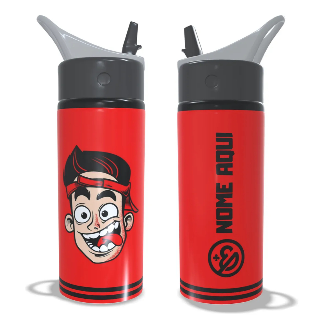 Garrafa Squeeze de Alumínio Enaldinho Youtuber Infantil Escolar Com Nome