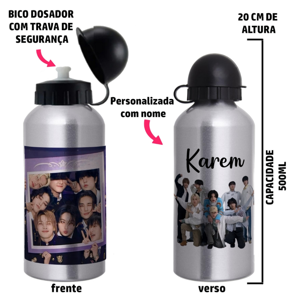 Garrafa Squeeze de alumínio infantil - Stray Kids Personalizada com nome