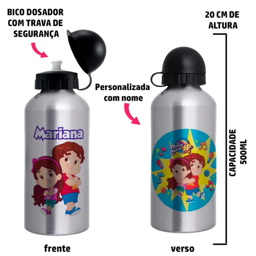Garrafa Squeeze de alumínio Maria Clara e JP - Personalizada com nome