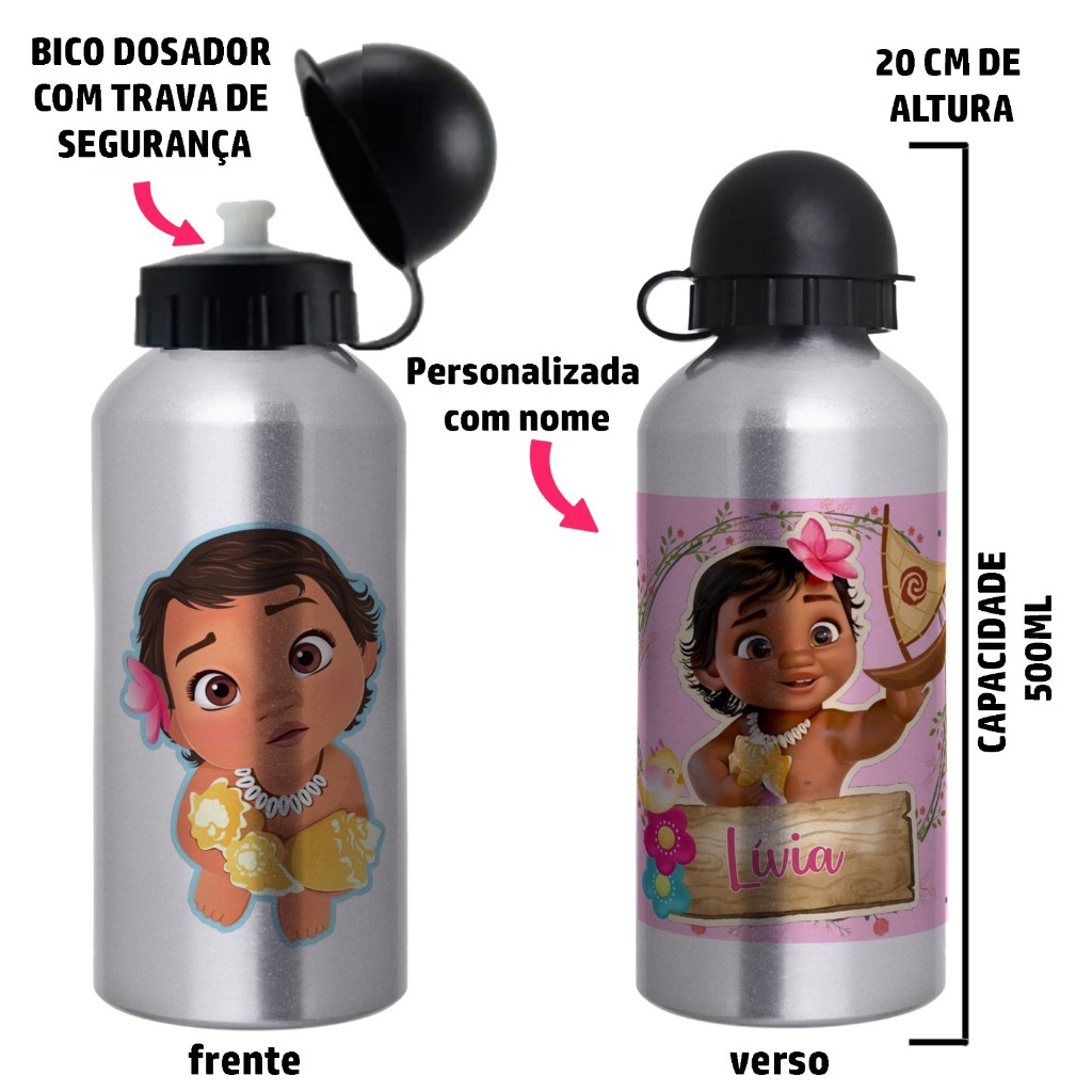 Garrafa Squeeze de alumínio Moana Baby - Personalizada com nome