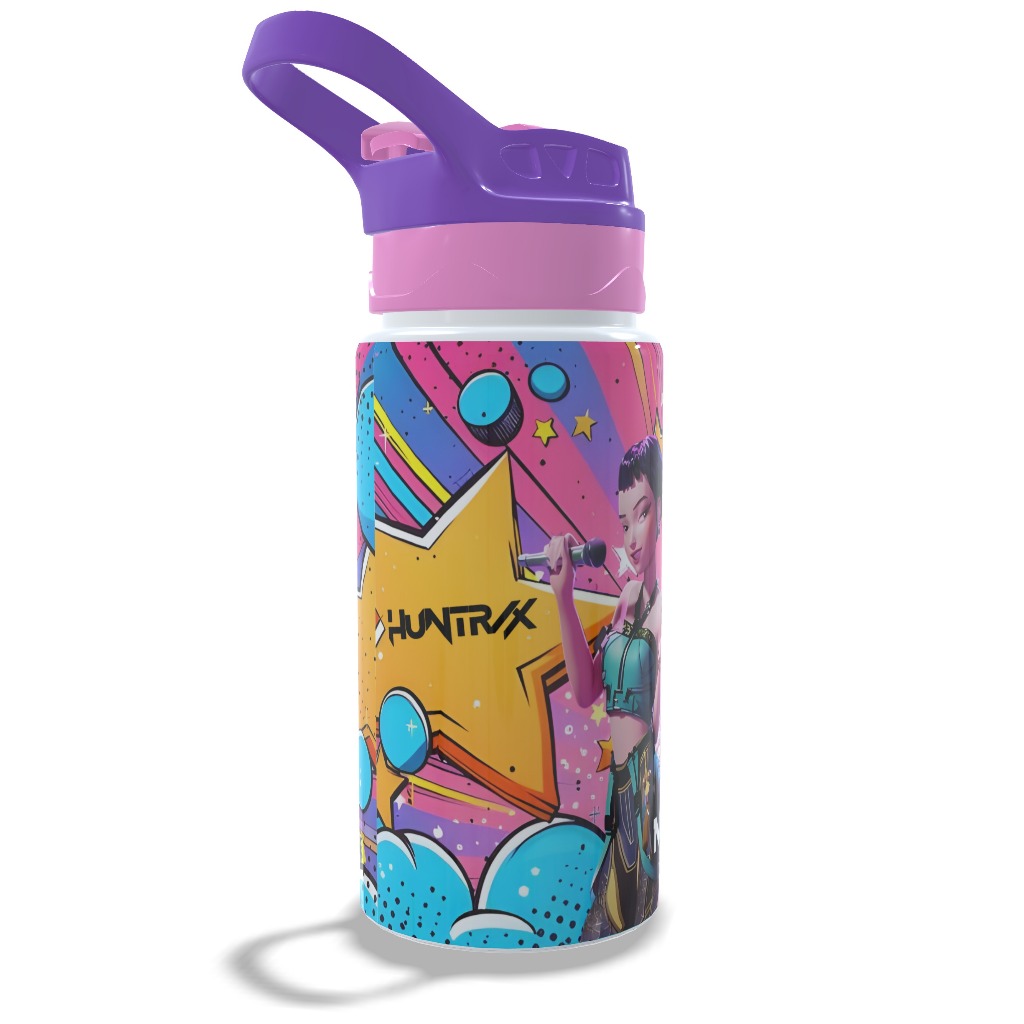 Garrafa Squeeze Infantil Escolar De Alumínio Huntrix Guerreiras K-Pop com Nome Personalizado 500ml