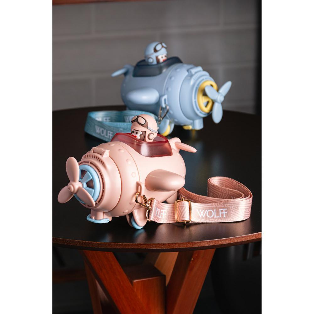 Garrafa Squeeze Infatil Wolff Avião Rosa 500ml