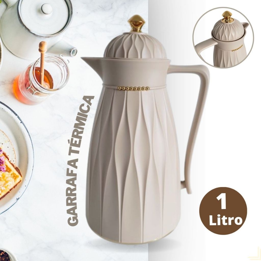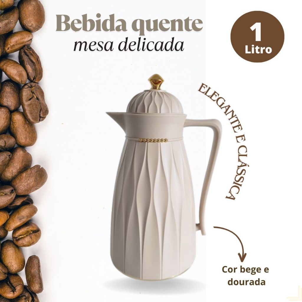 | Garrafa Térmica 1 Litro Khadija Café Chá Bege e Dourada Botão Click... este produto | R$ 139,90 | — | 4.8/5 | 1 |