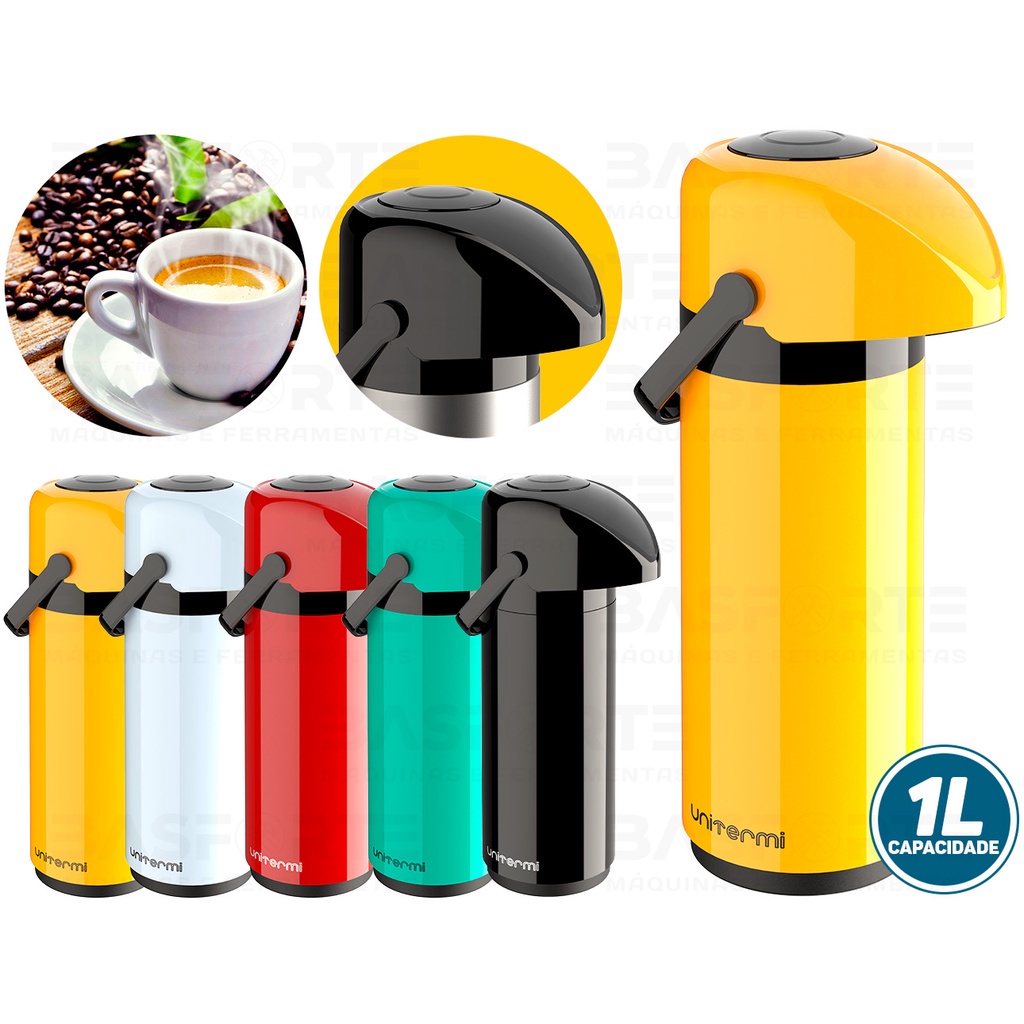 Garrafa Térmica 1 Litro Verona Unitermi Bomba De Pressão C/ Alça Café Chá Água Quente Fria Chimarrão