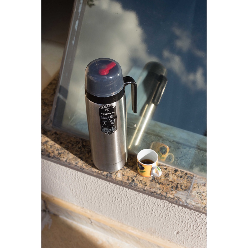Garrafa Térmica 100% Inox Inquebrável R-Evolution 1L Rolha Dupla Ação Termolar