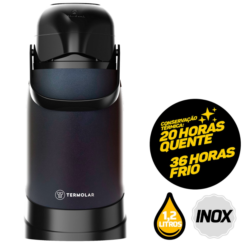 Distribuído por Ismafer Ferramentas Garrafa Térmica 100% Inox 1.2L R-Evolution Preto Hub - Termolar A Garrafa Térmica Inox R-Evolution 1,2 Litros Termolar é a escolha perfeita para quem busca sofisticação, durabilidade e eficiência. Desenvolvida pela Termolar, marca reconhecida pela qualidade e inovação, essa garrafa térmica oferece uma combinação única de design contemporâneo e funcionalidade. O acabamento 100% inox, tanto no exterior quanto no interior, garante alta resistência e durabilidade, mantendo líquidos quentes ou frios por longos períodos, ideal para quem não abre mão de conforto em qualquer situação. O grande diferencial da Termolar está na sua tecnologia de conservação térmica superior, resultado de anos de pesquisa e desenvolvimento. A linha R-Evolution foi projetada para atender os consumidores mais exigentes, oferecendo uma performance térmica incomparável, capaz de manter a temperatura de suas bebidas por muito mais tempo. Além disso, o exclusivo sistema que evita pingos e o jato forte e preciso tornam o uso dessa garrafa prático e eficiente, mesmo em ambientes agitados. Com cinco anos de garantia, a Termolar reforça seu compromisso com a qualidade e a confiança que seus produtos oferecem. A Garrafa Térmica Inox R-Evolution é a melhor escolha para quem valoriza tanto o design moderno quanto a funcionalidade. Seja em casa, no trabalho ou em viagens, ela garante que você sempre tenha sua bebida na temperatura ideal. Características Técnicas: - Capacidade: 1,2 Litros - Cor: Preto Hub - 100% inox - 5 anos de garantia - Alta resistência - Destaque em tecnologia - Conservação térmica diferenciada - Exclusivo sistema que não pinga - Jato forte e preciso Dicas de Uso: Para aumentar o desempenho da sua Garrafa Térmica R-Evolution, siga estas dicas simples: Para líquidos quentes: Escalde a garrafa previamente por 2 minutos antes de adicionar o líquido. Para bebidas geladas: Resfrie o interior da garrafa com água fria antes de utilizá-la. Com essas práticas, você garante a máxima eficiência térmica da sua Garrafa Térmica Termolar, mantendo suas bebidas na temperatura ideal por mais tempo. SKU: 24367 Distribuído por Ismafer Ferramentas