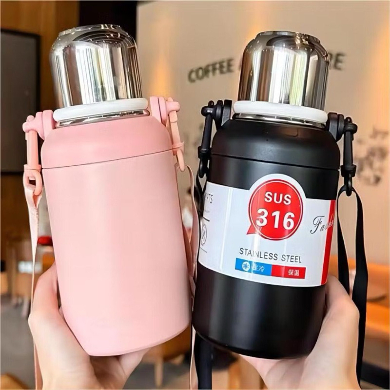 Garrafa Térmica 1000ml Com Alça Aço Inoxidável Isolamento Academia Trabalho Caminhada