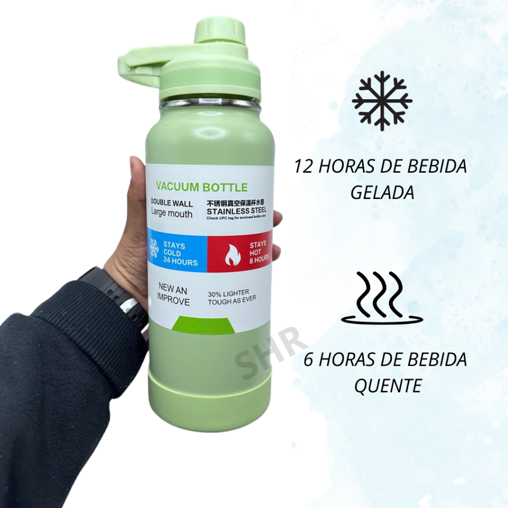 Garrafa Térmica 1000ml – Design Moderno, Alta Performance e Estilo Único! A combinação perfeita de funcionalidade e estilo para o seu dia a dia! Com design e acabamento premium, esta garrafa é ideal para manter suas bebidas na temperatura ideal enquanto você explora o mundo. Caracteristicas principais do produto: . Capacidade Generosa: 1000ml, perfeita para hidratação ao longo do dia. . Isolamento Térmico: Mantém suas bebidas quentes por até 6 horas ou frias por até 12 horas, graças à sua tecnologia de isolamento a vácuo de alta qualidade; . Design: Disponível em cores vibrantes e texturas modernas. Um verdadeiro item de estilo; . Material Premium: Aço inoxidável resistente e seguro para alimentos. Livre de BPA, garantindo segurança e durabilidade; . Portabilidade e Versatilidade: Compacta, leve e com alça prática para transportar facilmente na mochila ou na mão; . Fechamento à Prova de Vazamentos: Tampa com vedação hermética que impede qualquer tipo de derramamento; O que vem? 1 Garrafa Térmica 1000ml 1 Capa Bota Protetora De Silicone 1 Coador Inox Capa Protetora: Protege eficazmente o fundo do seu copo/garrafa ajuda a proteger contra amassados, batidas, quedas e danos causados por pancadas acidentais. Elimina ruídos altos ao colocar garrafas em superfícies duras e garante que elas permaneçam seguras quando você estiver em trânsito. Coador Inox: O coador retém sólidos como pedaços de frutas, ervas ou especiarias, permitindo que apenas o líquido passe para o consumo. Isso evita que você beba pedaços indesejados e facilita o consumo de bebidas como água saborizada ou chás. Totalmente indicado para você que busca uma garrafa térmica eficiente, moderna e estilosa, perfeita para o trabalho, academia, viagens, estudos ou aventuras ao ar livre. Um ótimo presente para amigos, familiares ou para você mesmo. Surpreenda com um item útil e encantador!