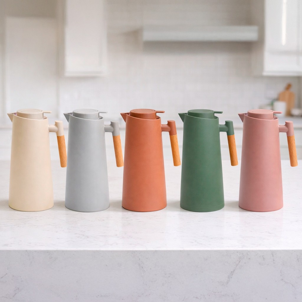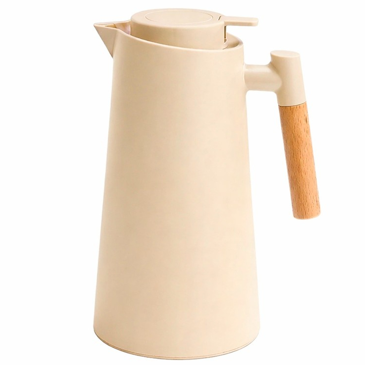 Garrafa Térmica 1L Cabo Madeira com Botão Acionamento Click Cores Diversas TOP