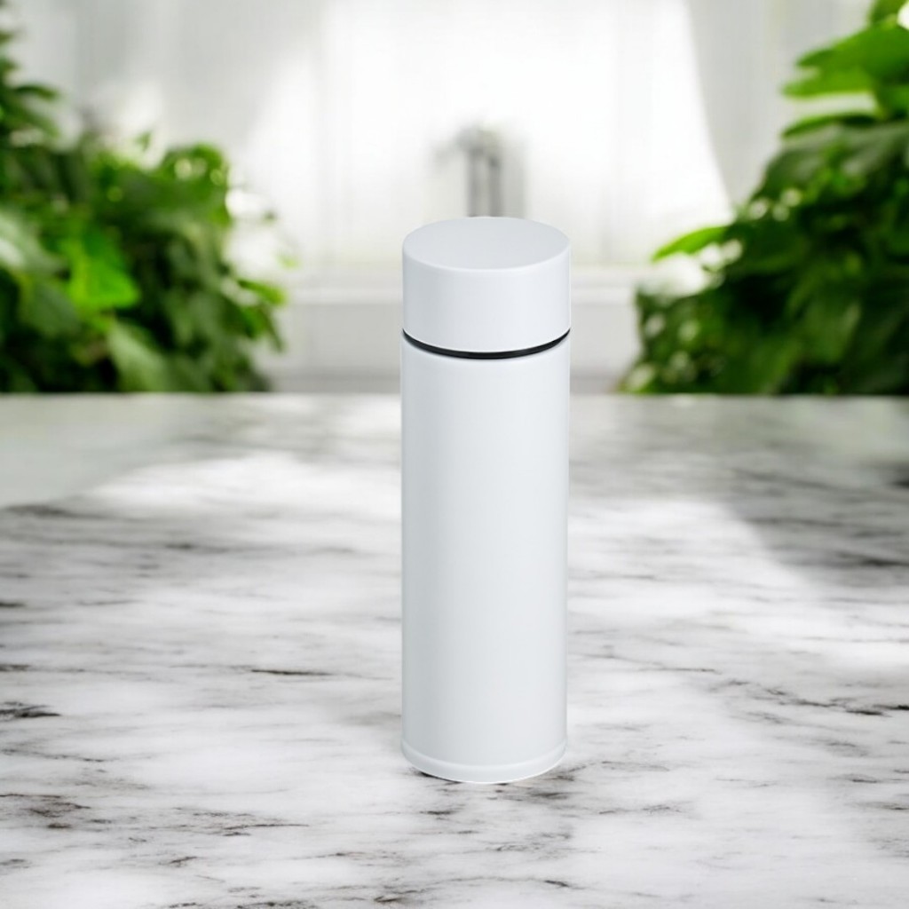 A **garrafa térmica de 320ml** feita em **aço inoxidável 304** oferece durabilidade e eficiência térmica, mantendo suas bebidas quentes ou frias por mais tempo, graças à sua parede dupla. O material de alta qualidade é resistente à corrosão e ideal para o uso diário. Com uma **tampa rosqueável** de vedação segura, a garrafa evita vazamentos, proporcionando tranquilidade ao transportá-la. Seu design compacto é perfeito para levar em bolsas ou mochilas, sendo uma ótima escolha para quem está sempre em movimento. Seja para café, chá ou água gelada, esta garrafa é uma opção prática e funcional para o seu dia a dia! MEDIDAS APROXIMADAS: Altura : 18,7 cm Largura : 5,8 cm Circunferência : 18,5 cm Peso aproximado (g): 205
