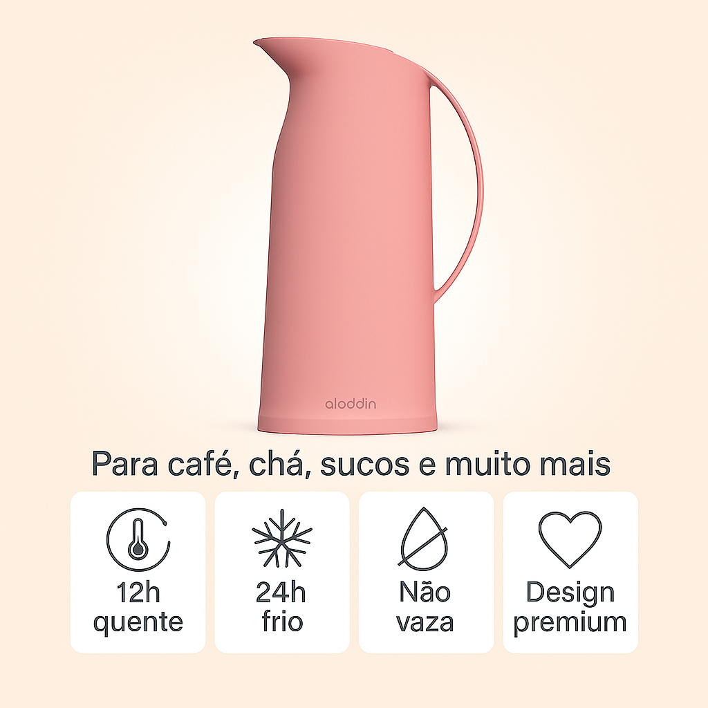 SILCO GARRAFA TÉRMICA 750ML ALADDIN Café quente por horas, com estilo e sem complicações Transforme seu momento do café em uma experiência de prazer, beleza e praticidade. A Garrafa Térmica Futura Aladdin 750ml mantém suas bebidas quentes por até 12 horas e frias por até 24 horas, com um design elegante que combina com qualquer ambiente. Benefícios que fazem a diferença: - Ampola de vidro: Conservação térmica superior, sem alterar o sabor. - Sistema de rolha inteligente: Sirva com praticidade e segurança. - Design minimalista e moderno: Estilo que valoriza sua cozinha ou escritório. - Capacidade de 750ml: Ideal para o dia a dia, cafés, chás ou água. - Construção robusta: Material externo em polipropileno resistente. Com a Garrafa Térmica Futura Aladdin, você não precisa mais reaquecer bebidas ou lidar com recipientes que esquentam por fora ou derramam. Ela entrega conforto, economia de tempo e sofisticação. Um produto que une eficiência térmica e estética refinada, ideal para presentear ou valorizar sua rotina com mais qualidade. Perguntas Frequentes Respondidas 1. A garrafa conserva mesmo o café quente por 12 horas? Sim! Graças à ampola interna de vidro e ao sistema de vedação eficiente, a temperatura é mantida por até 12 horas para líquidos quentes. 2. Posso usar para bebidas frias também? Sim! Ela conserva bebidas frias por até 24 horas, ideal para sucos, águas saborizadas ou chás gelados. 3. O material externo esquenta? Não. O corpo em polipropileno isola completamente o calor, garantindo conforto e segurança ao manusear. 4. Essa garrafa vaza ou pinga ao servir? Não. Ela possui sistema de rolha com vedação precisa, evitando qualquer vazamento ou gotejamento. 5. Cabe bem em bandejas ou armários? Sim. Com altura de 27,2 cm e base de 11,1 x 12,2 cm, ela se encaixa bem em bandejas, armários e superfícies de apoio.