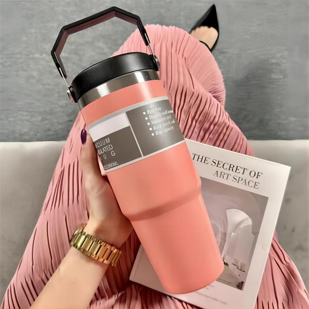 Garrafa Térmica 900ML Com Alça Flip Tumbl Aço Inoxidável Isolamento Térmico Com Canudo P/ Academia Trabalho Caminhada