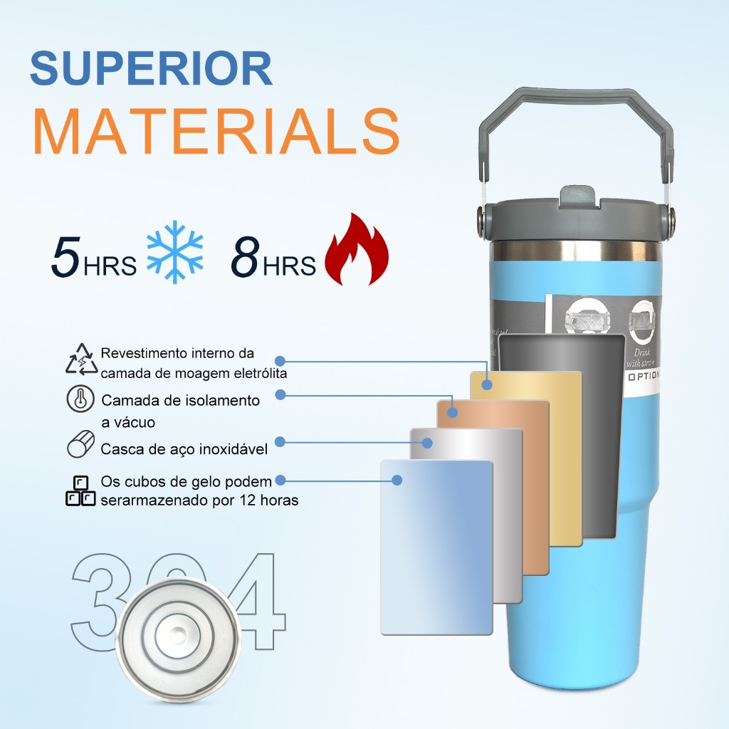 Garrafa Térmica 900ML Com Alça Flip Tumbl Aço Inoxidável Isolamento Térmico Com Canudo P/ Academia Trabalho Caminhada