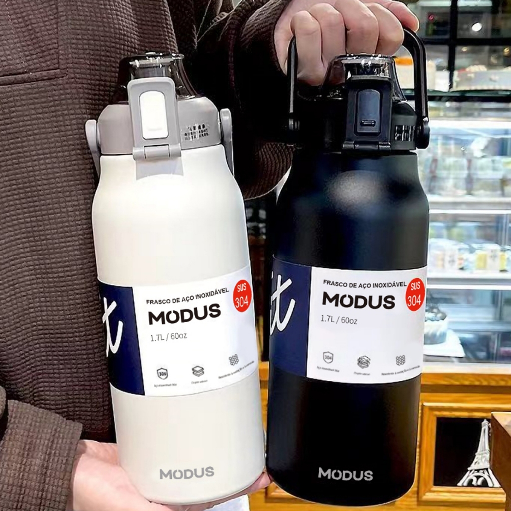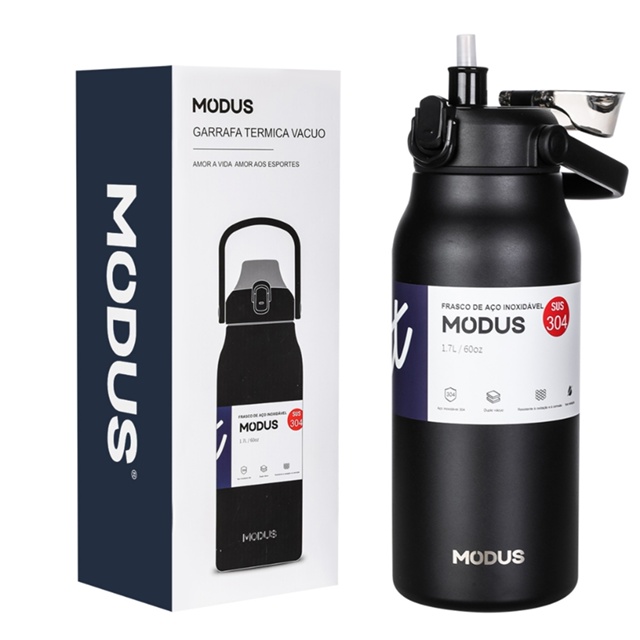 Marca: MODUS Design exclusivo: Com o botão One Touch Open and Close e a tampa higiênica flip top. A tampa e o canudo podem ser desmontados de forma independente e são fáceis de limpar. Material de alta qualidade: Feito de aço inoxidável e Sem BPA , a garrafa de água isolada a vácuo de metal significa melhor retenção de calor e frio e impede a condensação do lado de fora. À prova de vazamentos e fácil de beber: A tampa com trava à prova de vazamentos evita 100% de vazamentos. Além disso, a garrafa de água tem um canudo longo que chega até o fundo, para que você possa beber facilmente. Grande capacidade de 1700ML : a garrafa de água tem a capacidade de atender às suas necessidades diárias. Seja em uma caminhada ou em um acampamento, você pode aproveitá-la com confiança. Presente perfeito: esta garrafa de água é o melhor presente para sua família, mãe, pai, marido, esposa, amantes, vizinhos, amigos, colega de trabalho.