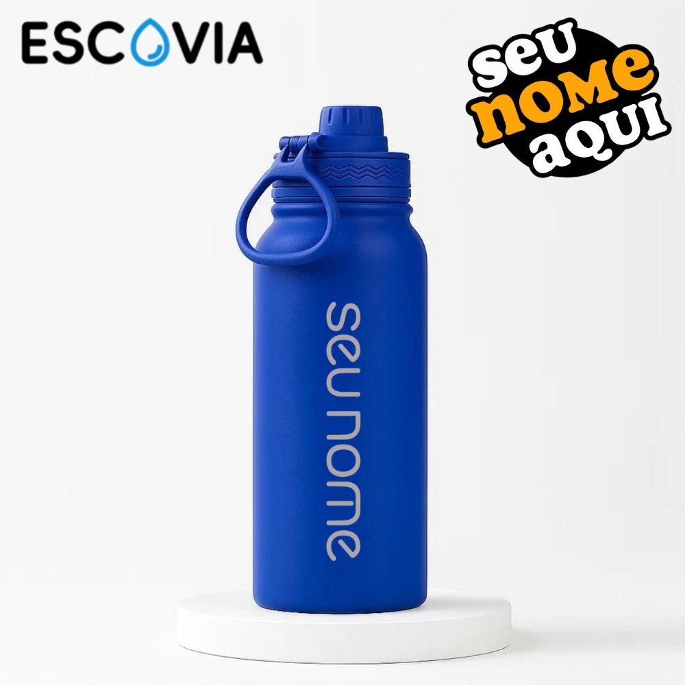 Garrafa Térmica Aço Inoxidavel Parede Dupla Personalização de nome com tampa e Alça 600ml