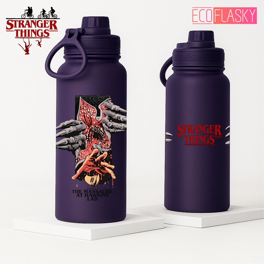 Garrafa Térmica Aço Inoxidável Stranger Things Netflix Com Alça Portátil Esportiva 600ml 800ml