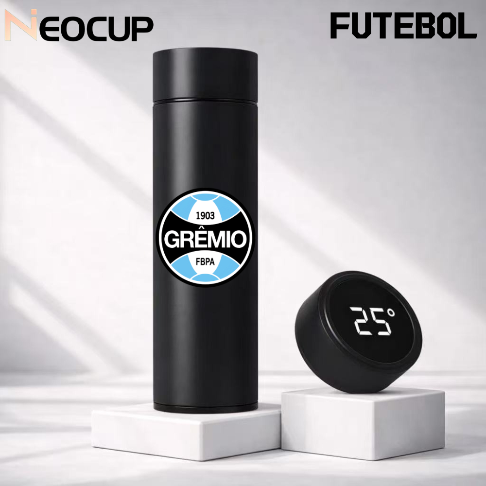 Garrafa Térmica Aço Inoxidável Time de Futebol Grêmio com termômetro digital 500ml