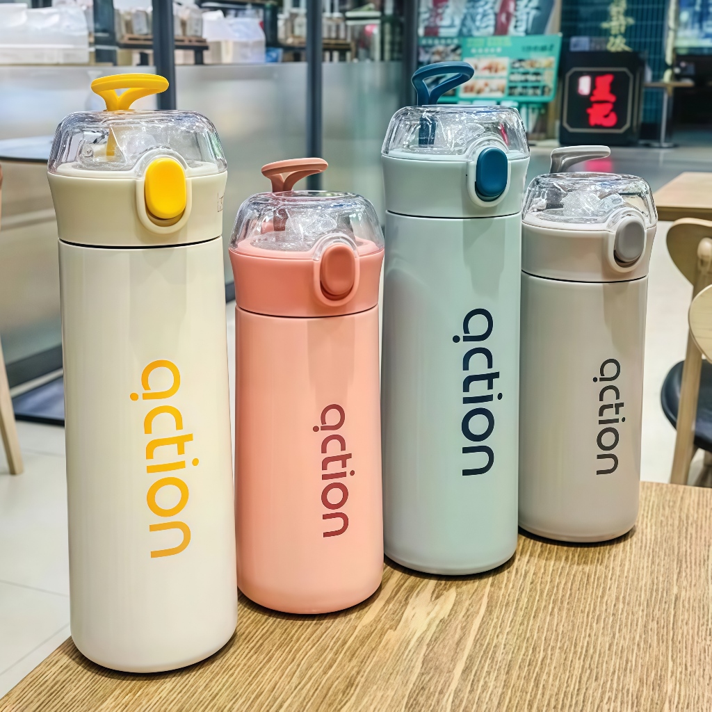 Garrafa Térmica Action Elegante De de Aço Inox Com Alça e Canudo MB269-270