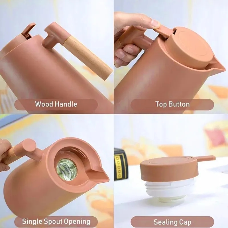 Garrafa Térmica Akita Terracota 1L Cabo Madeira Lehaví