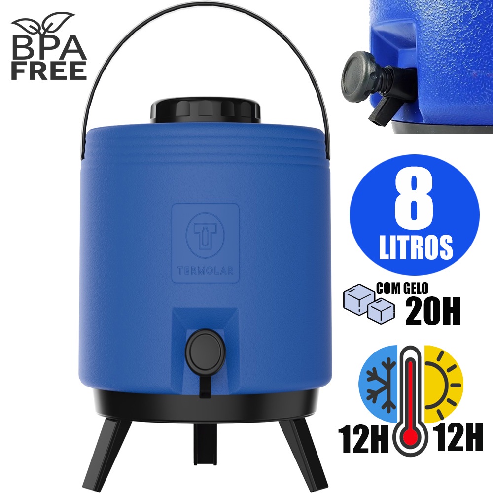 Garrafa Térmica Botijão Azul 8 Litros Não Pinga PU Termolar