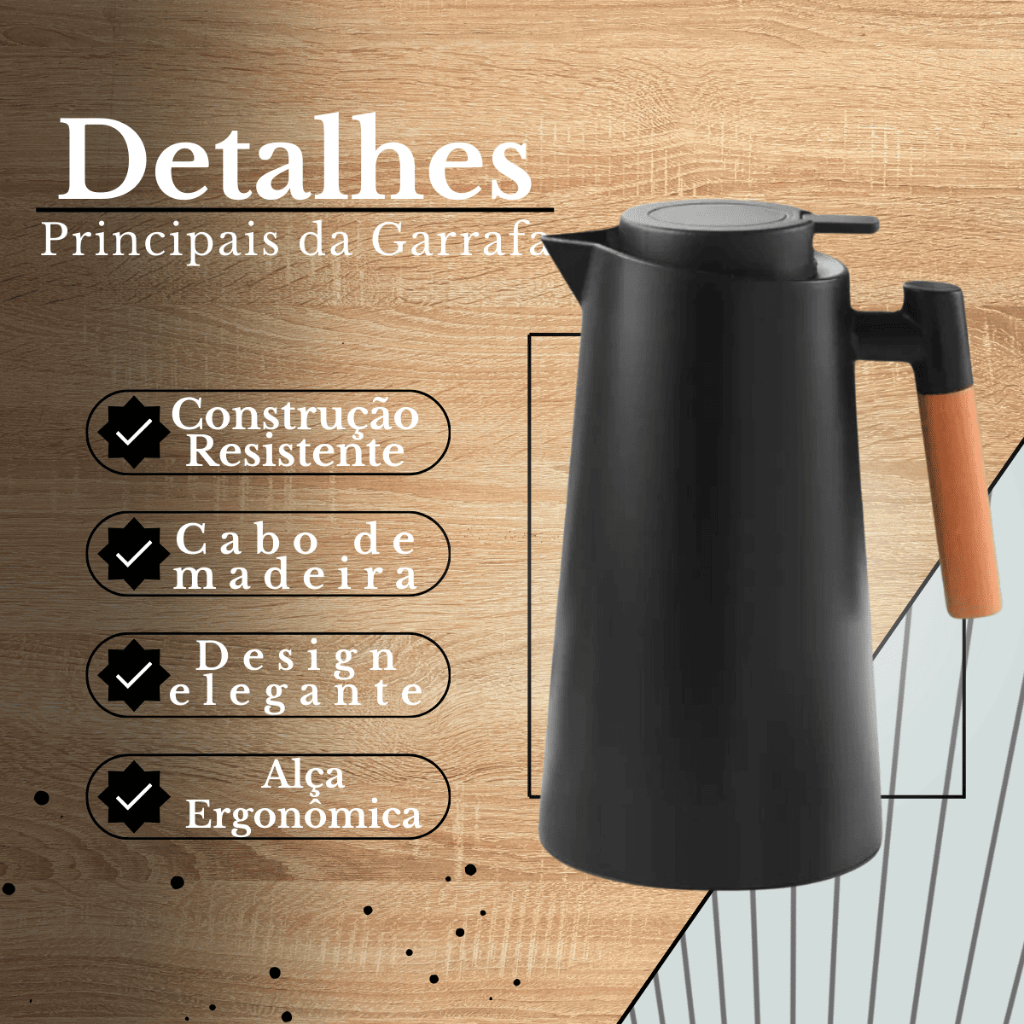 Garrafa Térmica Café Chá Cabo em Madeira Jarra 1 Litro Cafeteira 4 Cores